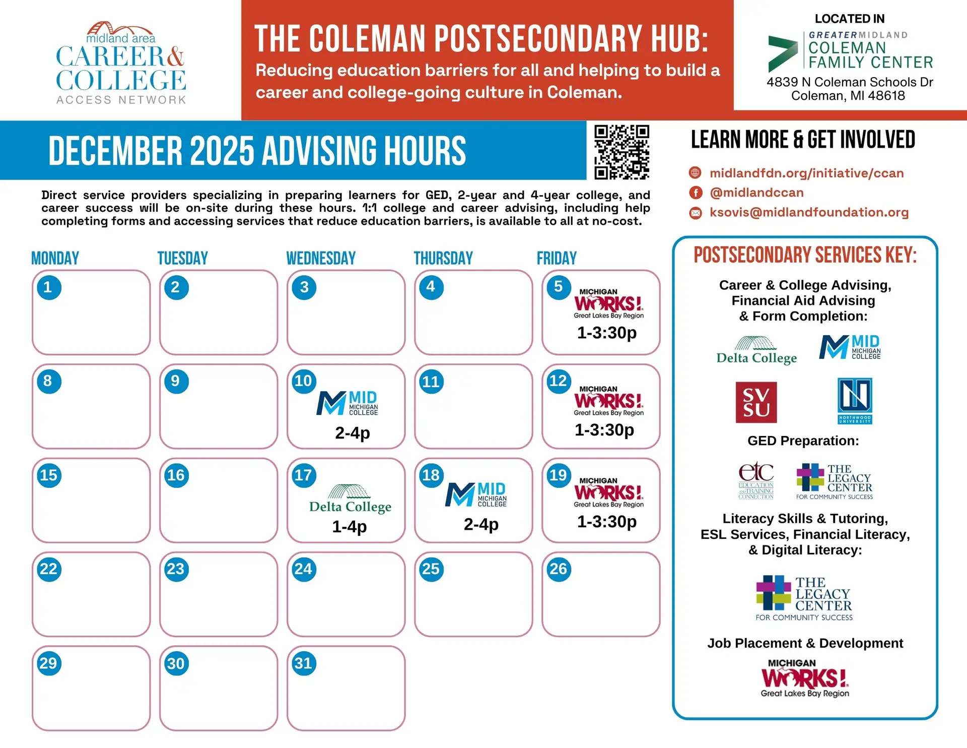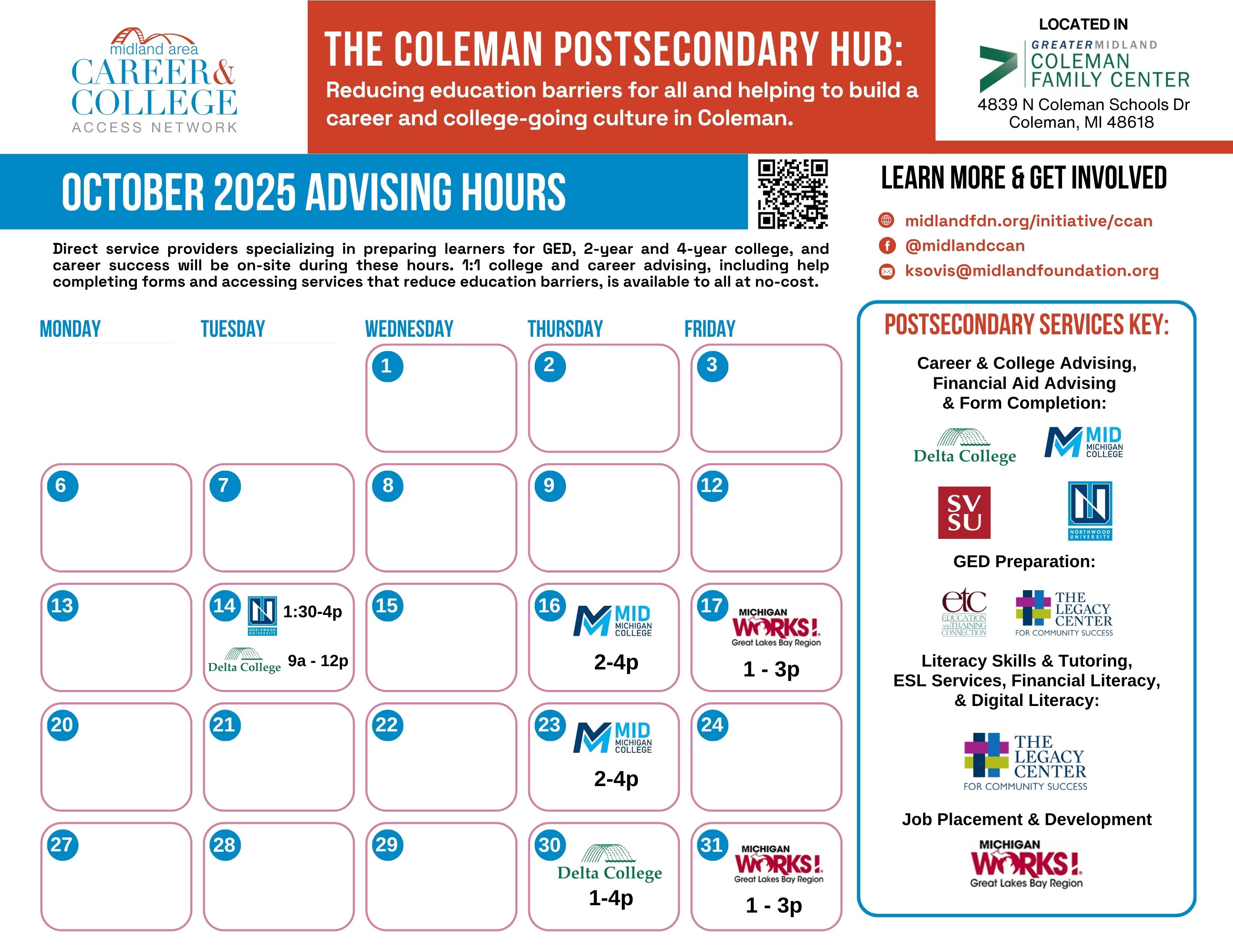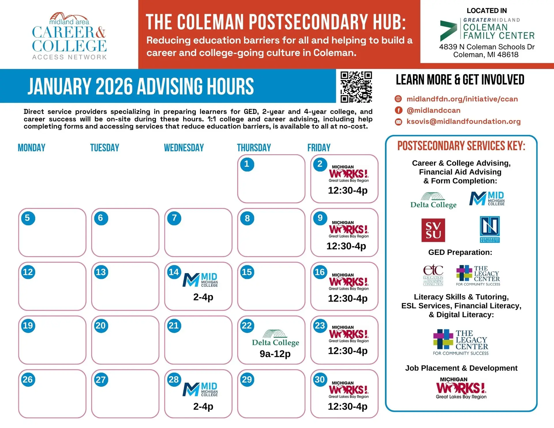 The Midland Area Career & College Access Network is proud to present the Coleman Postsecondary Hub:
