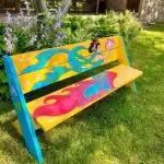 My picnic table is an ode to the beautiful colors and shapes of the Flora and Fauna of Dahlia Hill, Whiting Forest, City Forest and of course, Dow Gardens. True to my artistic style, there is an abstract spin to it.