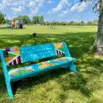 This bench was painted during the Midland Area Community Foundation’s 2023 Scholarship Award Open House in June. It was painted by scholarship recipients and their families, scholarship fundholders, Foundation Trustees and staff as a way to get everyone engaged.