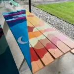 My picnic table design aims to embody the peaceful, but often ambiguous emotions surrounding the beginning and ending of each day breaking through. The power of public art allows community members to immerse themselves within perspectives that differ from their own. My hope for this piece is to inspire community members to not only be present in their own changing seasons, but within those of their peers and community.