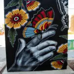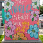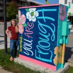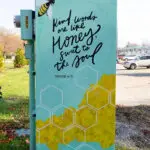 Artist Bio/Statement: I’m Kristin Cronkright, a Midland native and natural born maker at heart. I love to pull inspiration from nature, which is why I chose to feature honey bees on my Outside The Box mural. Honey bees are amazing little creatures and incredibly social; they communicate well, love to dance, and are always helping each other out by working hard and supporting one another. They’re incredibly driven, identifying their purpose and knowing they have a big job to do in order to keep their colony thriving. I think we as a community could learn a lot from them by loving one another as we are, with the many roles we all play in making this space thrive, and by being kind no matter what.