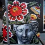 “My creative work includes tattooing, drawing(digitally and traditionally), painting, sculpting and simply creating using whatever tools are available to me. In my day to day work I am a tattoo artist, however I do not limit myself to any one particular medium or style. The variety of mediums I use often inspire and are evident within one another in my work. For example I often include elements of black and gray realism in my tattoo work as an extension of my initial background in graphite and charcoal realism drawing, and elements of American traditional tattooing style in my paintings and drawings as an extension of what I’ve picked up as a tattoo artist. In this way art itself is transformative, as well as having the ability to transform otherwise mundane objects into something beautiful.”